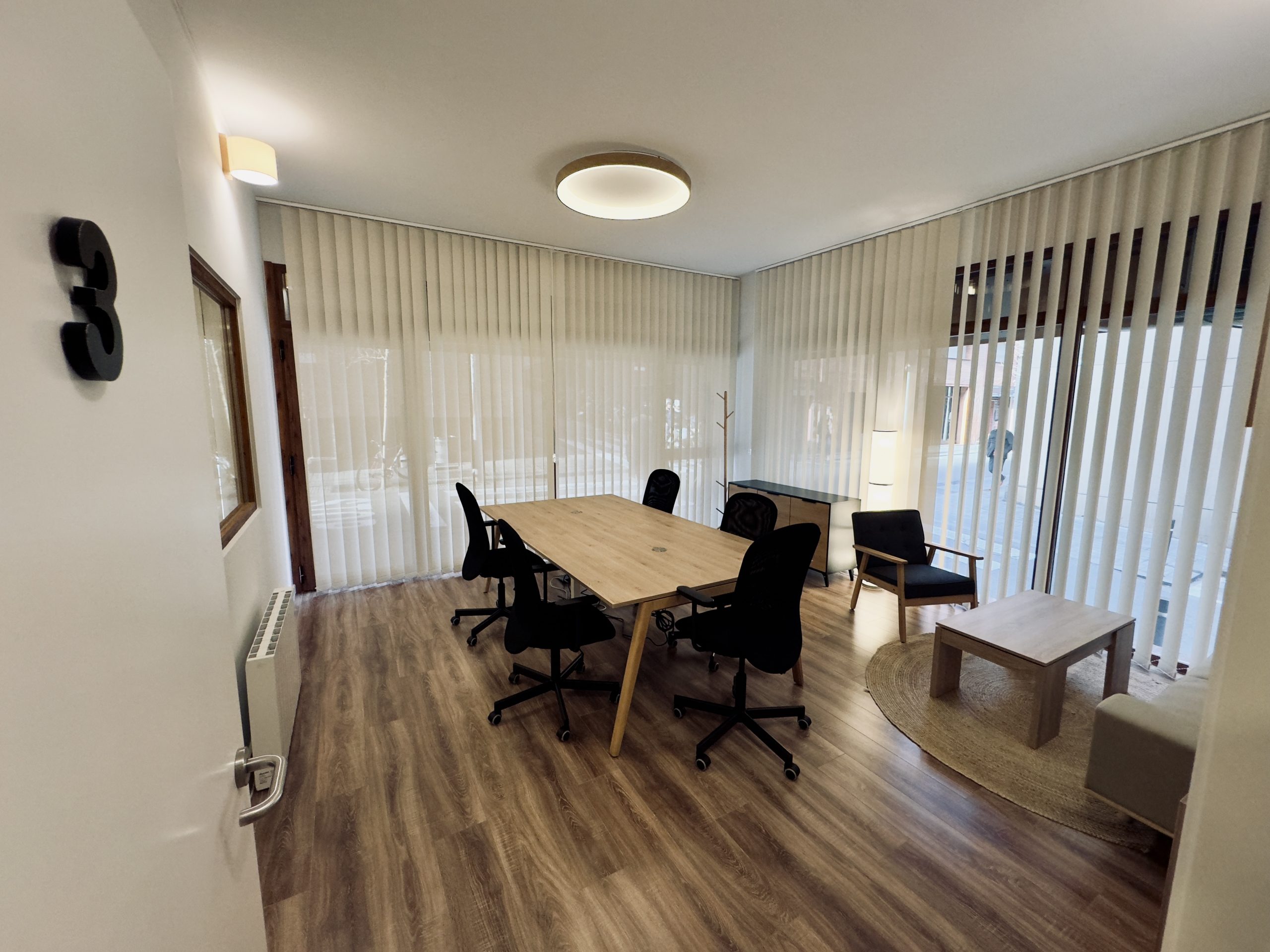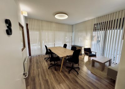 Se trata de un espacio de 300m2 distribuidos en 9 despachos individuales y 2 despachos superiores que se pueden usar como sala para formaciones, dos lavabos, una pequeña sala de espera y un rincón office. Todas las salas disponen de luz natural, suelos de madera y sistema de aire acondicionado frio/calor.
